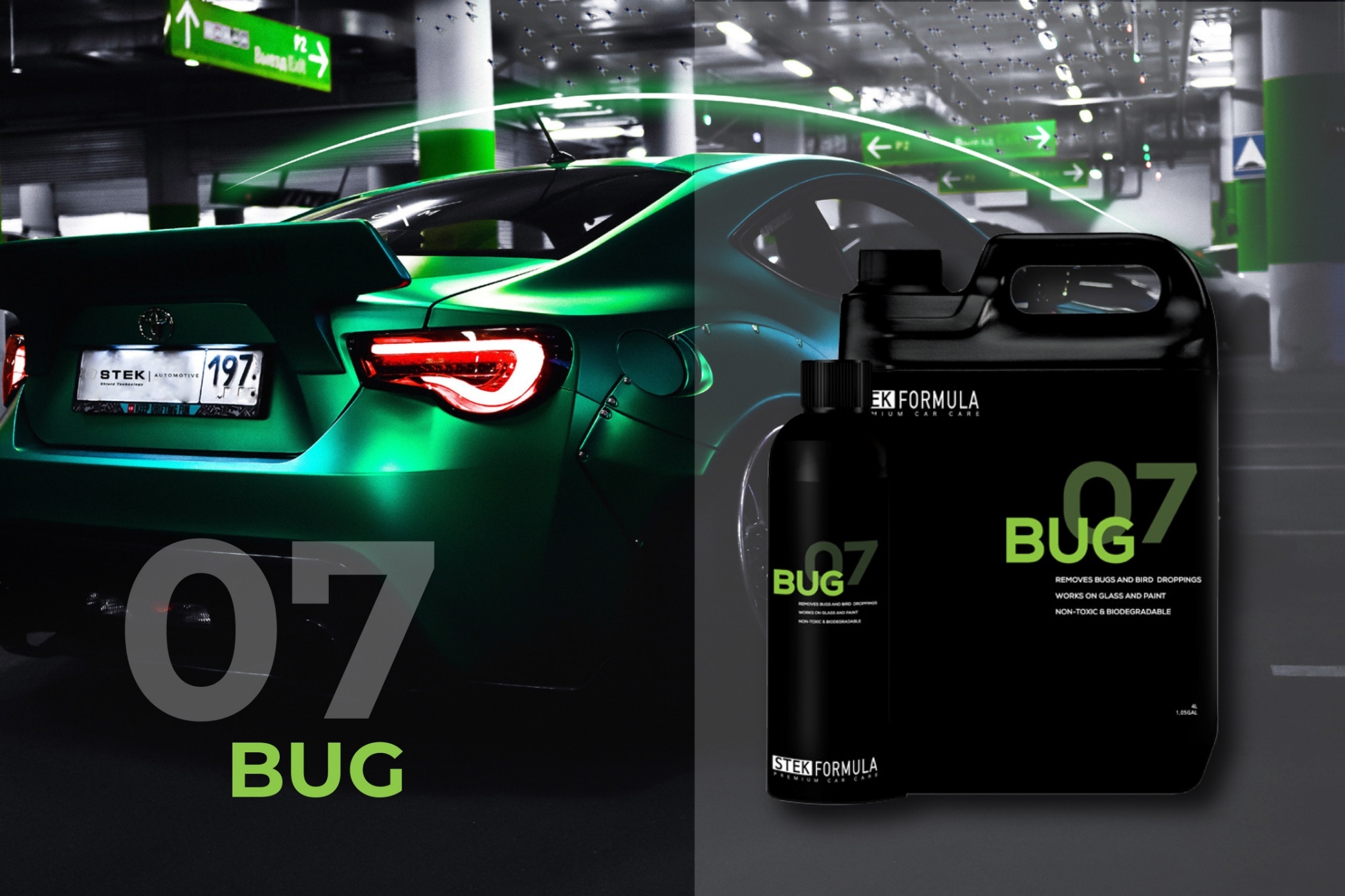 STEK FORMULA BUG breaks down heavy bug and bird contamination, defending your paint surface against permanent damage. If left alone, the highly corrosive substances within these contaminants can eat away at your paintwork. Our proprietary formula contains specialized agents that break down proteins found in these substances, fully eliminating them from painted surfaces. Safe to use on clear coats, our fast-acting solution eliminates the need for harsh scrubbing, reducing the risk of leaving behind scratches and swirl marks.
