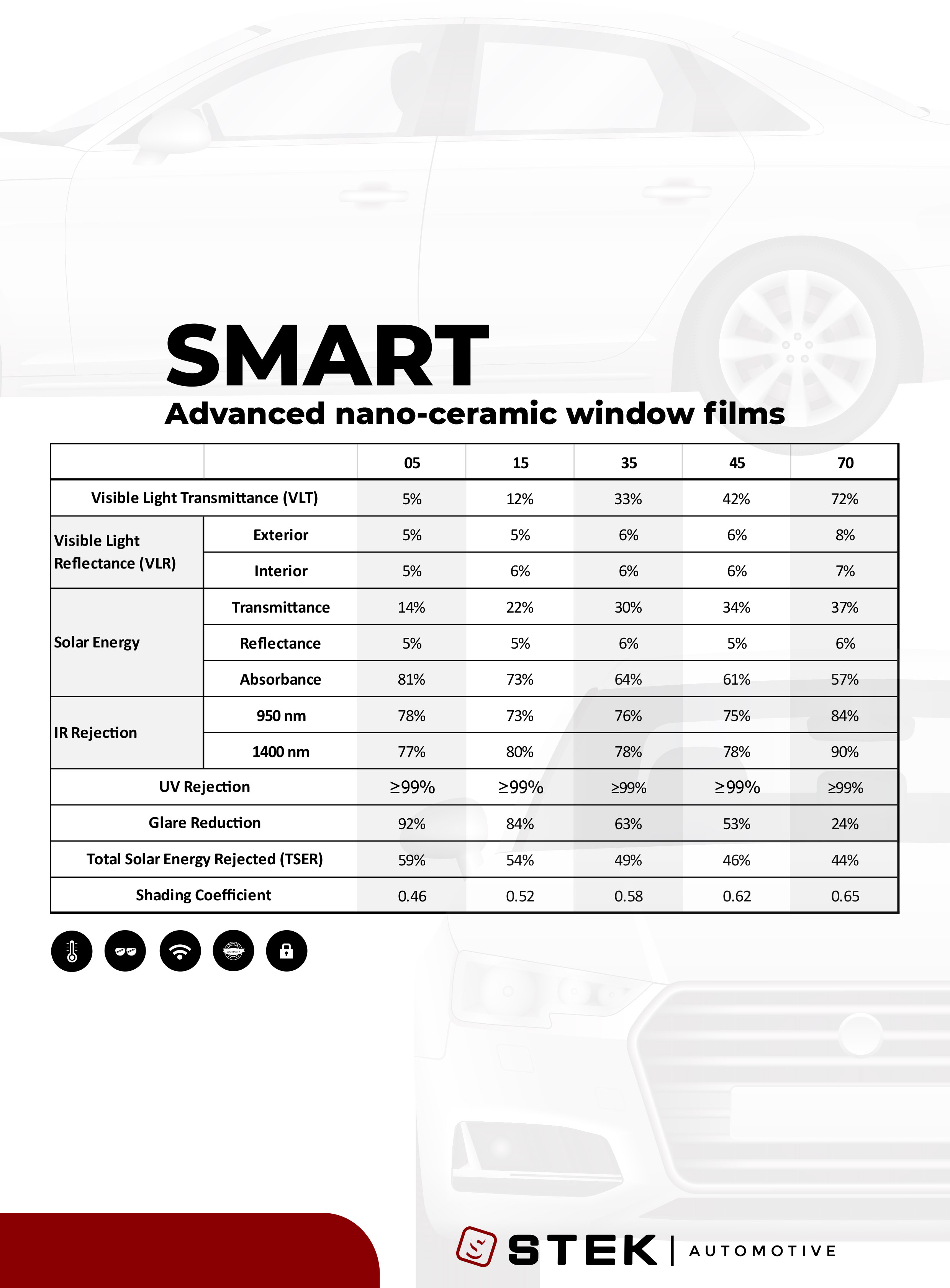 The SMARTseries Difference Color retention and performance Heat Reduction UV Protection Increase clarity and reduce glare Installs cleanly Limited Lifetime Warranty